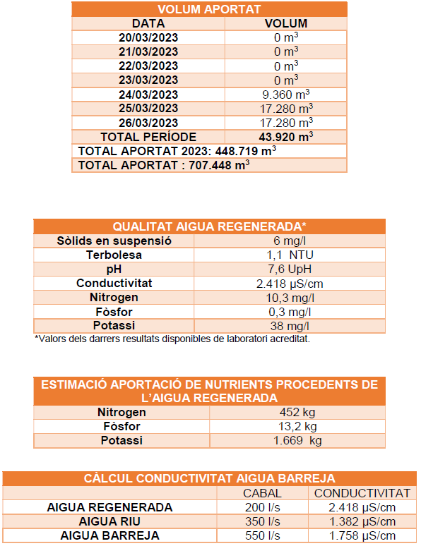 El subministrament d’aigua regenerada s’ha reprès els passat dia 24 de març a les 10.30
