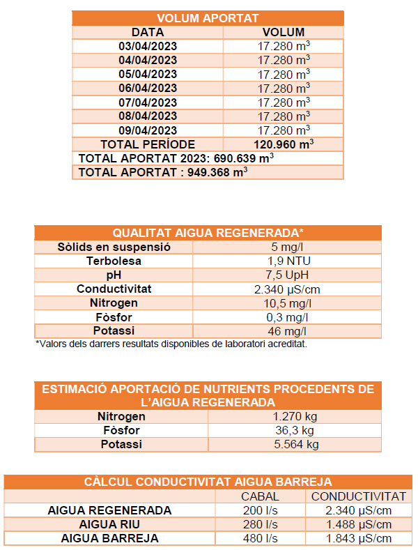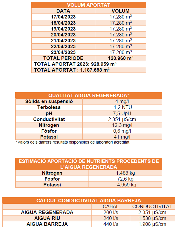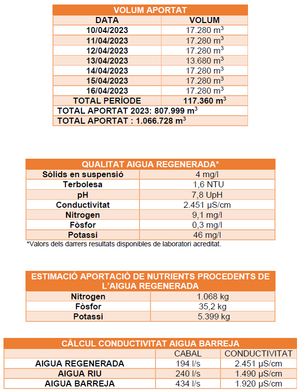 El cabal subministrat durant la setmana del 17 d’abril al 23 d’abril ha estat de 200 l/s, sense cap incidència.